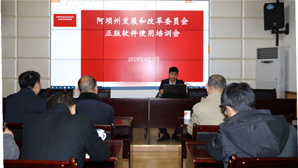 为加强知识产权保护,根据阿坝州政府推进使用正版软件工作领导小组办公室相关文件要求,阿坝州发展和改革委员会购买了正版办公软件(WPS Office 2016 专业版)100套,并于2018年4月3日上午,组织召开了正版软件使用培训会。